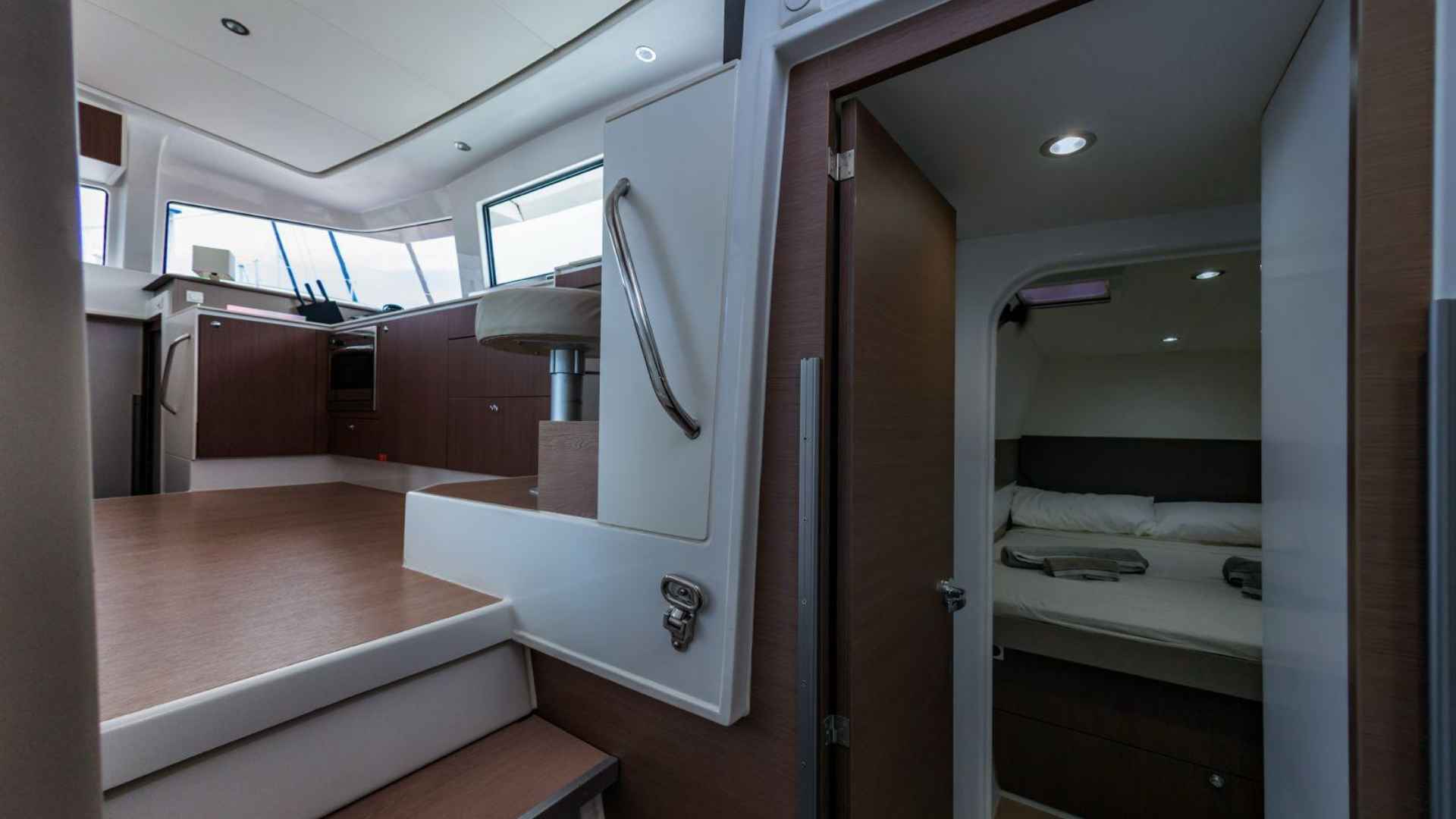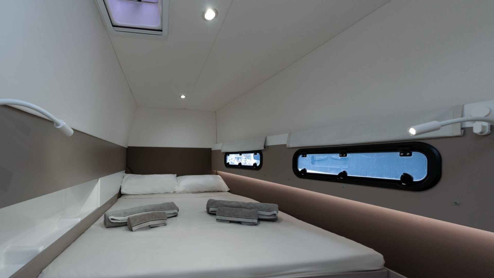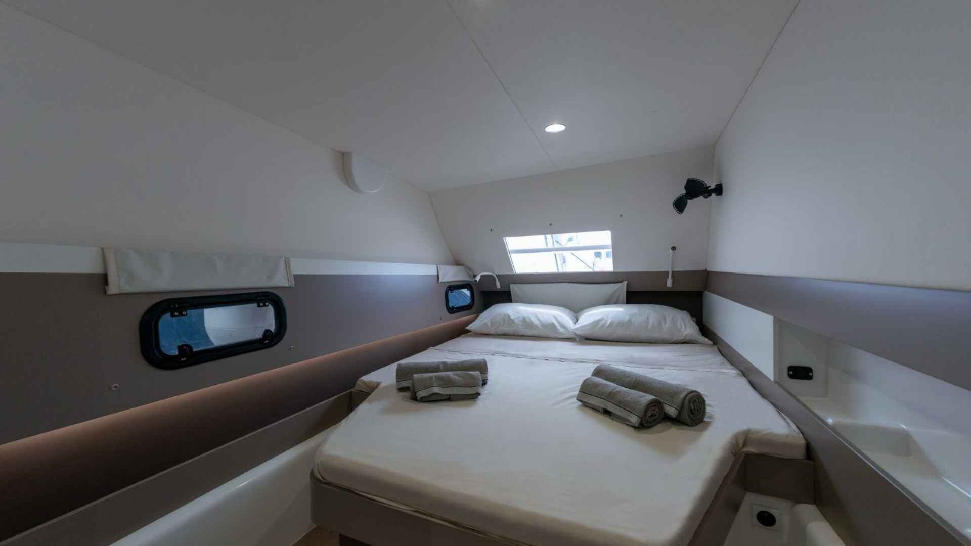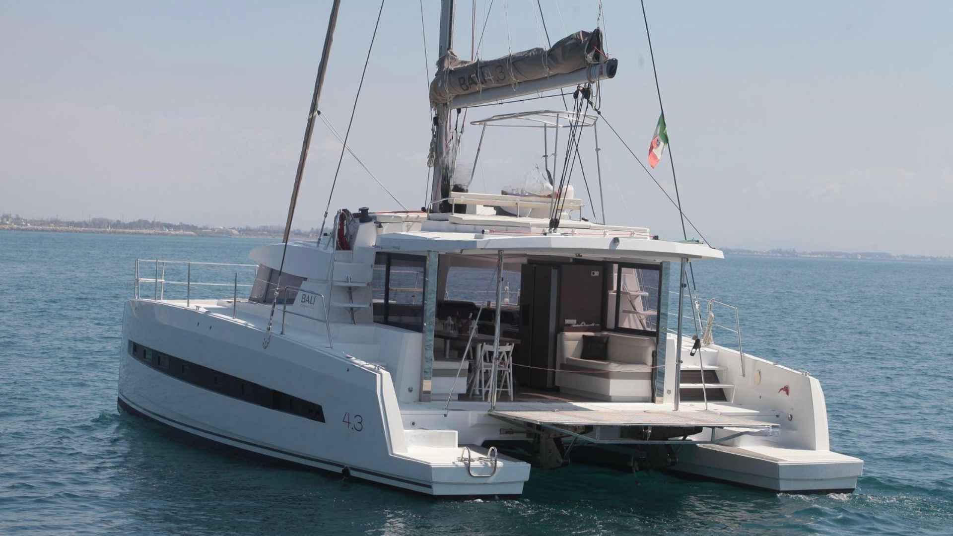 Bali 4.3 For Sale 2020 | Guest Cabins:4 | Crew Cabins:1| VAT Not PaidThe Bali 4.3 For Sale 2020 is an appealing opportunity for anyone looking for a comfortable, modern, and well‑kept cruising catamaran. Built by the respected Catana Group, this 2020 model combines thoughtful design with practical features that make life on board straightforward and enjoyable. She has had just one owner since new and has been maintained regularly, presenting today in good condition both inside and out. Currently lying in Campania under the Italian flag, she offers a solid balance between liveability, reliability, and performance.Specifications:• Shipyard: Catana Group • Model: Bali 4.3 • Year: 2020 • Length overall: 13.10 m • Beam: 7.12 m • Draft: 1.2 m • Displacement: 11,500 kg • Cabins: 4 double + 1 crew • Bathrooms: 4 • Engine type: Yanmar 4JH57 (2 x 57 HP) • Engine hours: approx. 1200 • Water capacity: 800 L • Solar panels: 120 A/h • Watermaker: 240 L/h • Inverters: 2 x Victron (4000 W total)General Design and Comfort • Emphasis on open spaces and comfort • Rigid forward cockpit • Saloon‑to‑cockpit open‑plan layout • Strong ventilation and natural light • Practical storage options for clutter‑free cruising • White fibreglass hullAccommodation • Four double cabins • One crew cabin • Convertible dinette berth • Four well‑designed bathrooms • Dark mahogany interior wood for a warm atmosphereGalley • Stove • Oven • 660‑litre fridge • Layout suitable for extended cruising or living aboardSailing and Handling • Mainsail and jib (both original) • Lewmar winches, including one electric winch • Saildrive transmission • Wheel steering for predictable manoeuvringEngines • Twin Yanmar 4JH57 engines • 57 HP each • Approximately 1200 engine hours (January 2026)Upgrades and Autonomy • Solar panels (120 A/h) • 240 L/h watermaker • Two Victron inverters in parallel (4000 W total)Navigation and Electronics • Raymarine plotter • Raymarine instruments • Autopilot • VHF • Wind instrumentationExterior Features • Bimini • Cockpit table • Lowering aft platform for water access or tender handlingAnchoring and Mooring • 15 kg anchor • 100 m of chain • Fenders • Mooring lines