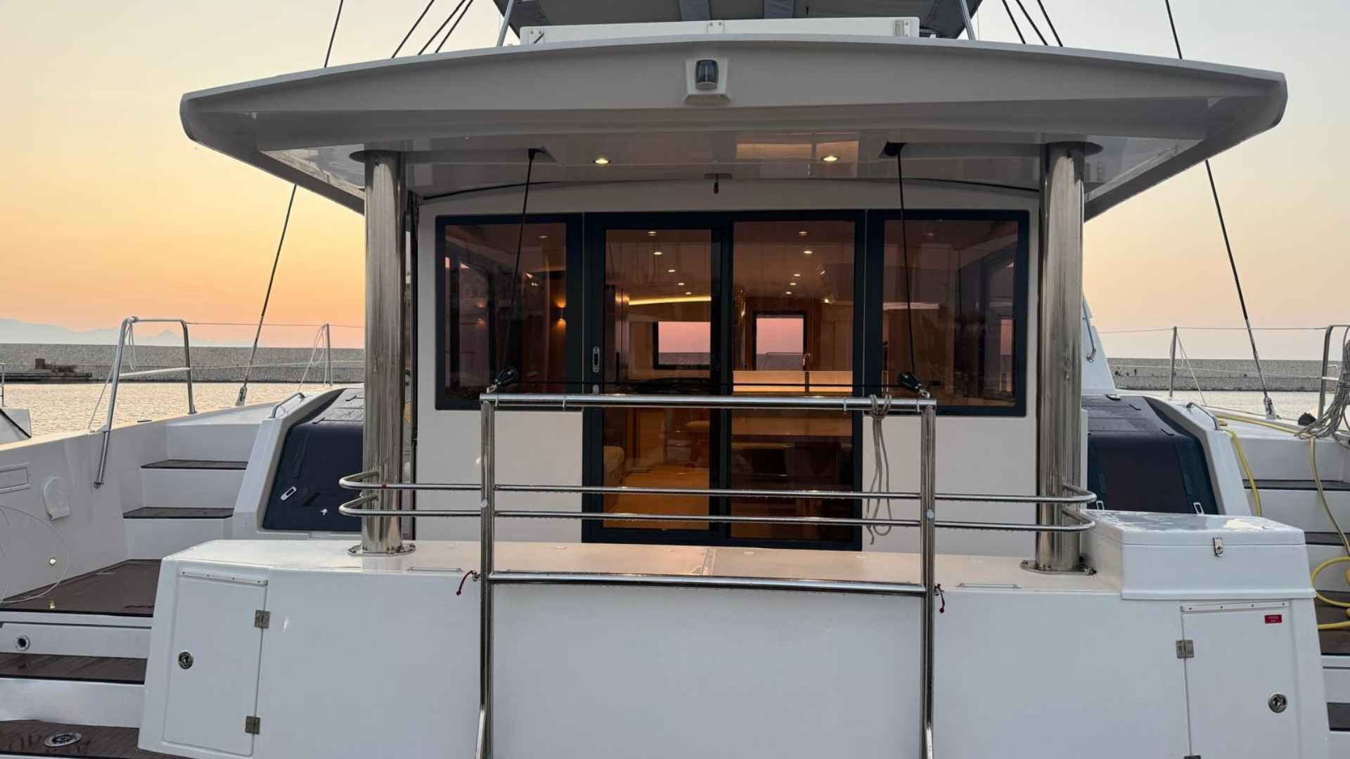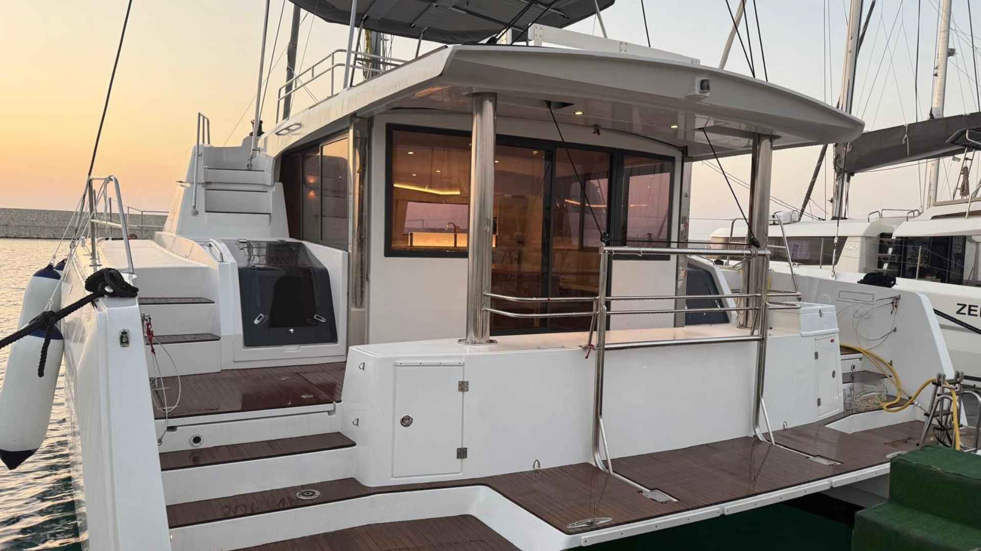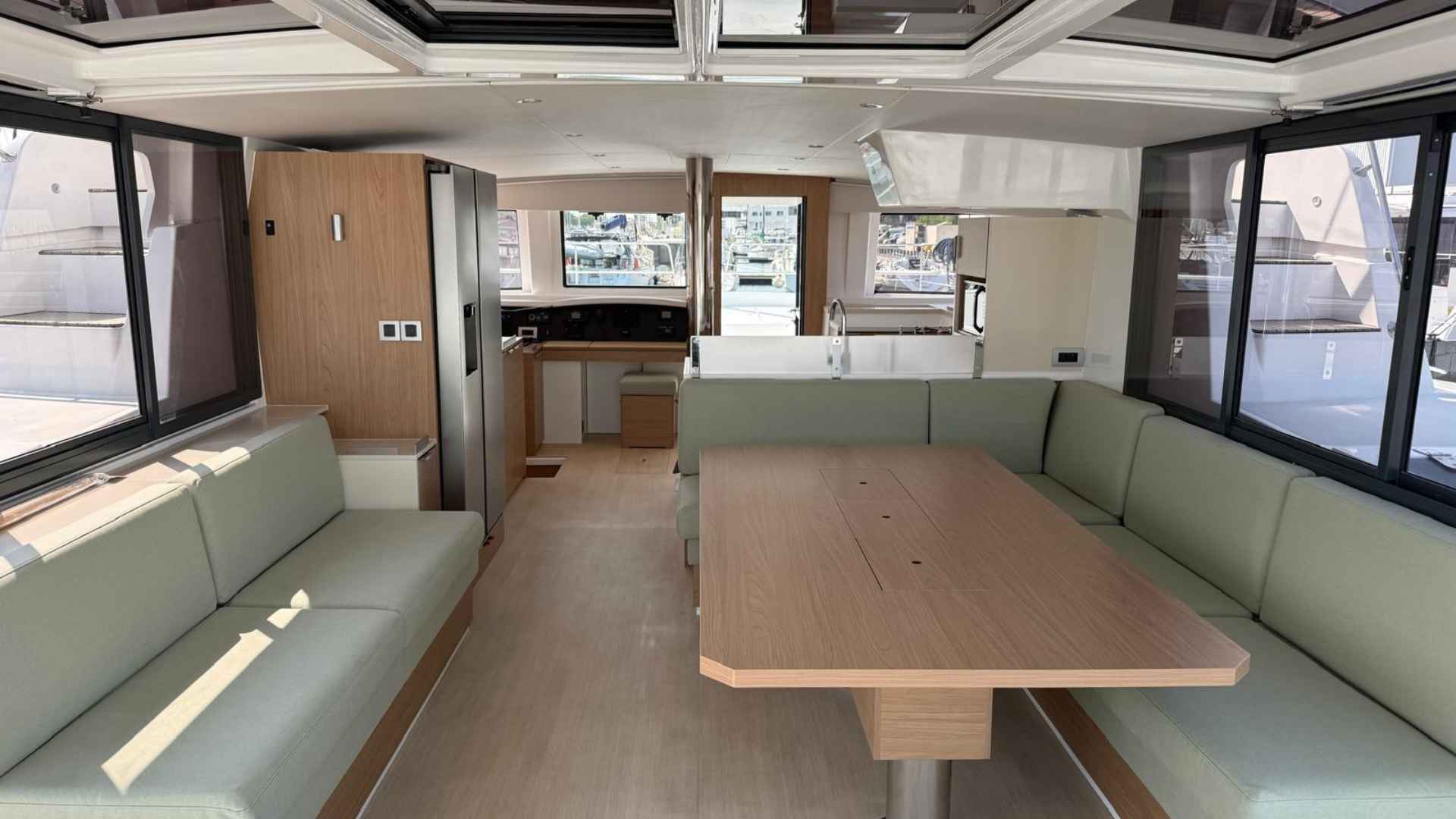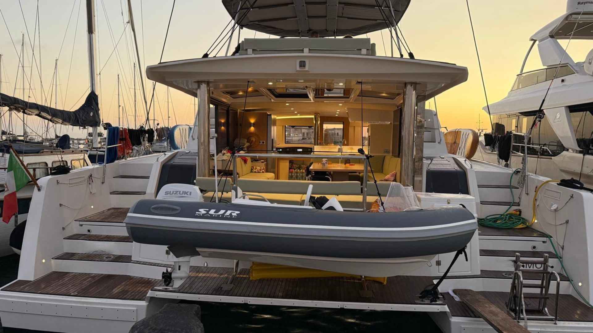 Bali 4.8 for sale 2024 | 4 Guest Cabins + 1 Crew Cabin | Tax Excluded Bali 4.8 for sale 2024 — a practical and well-equipped catamaran in good condition, offered by Catana Group. This Bali 4.8 for sale 2024 is Italian-registered and built in 2024, presenting a modern cruising platform designed for comfortable life aboard and straightforward handling. She is in good condition and ready for inspection; the boat is visible in Sicily.Below is a clear specification list for quick reference - Bali 4.8 for sale 2024:GeneralManufacturer: Catana GroupModel: Bali 4.8Registration/Nature: Italian, registered (pleasure craft)Year of construction: 2024Safety certificate expiry: 2033Location: SicilyNote: Boat visible in SicilyDimensions & capacityOverall length: 14.86 mBeam: 7.88 mDraft: 1.35 mDisplacement: 22,000 kgNumber of owners: 1CE Certification / Passenger capacity: A12 / B14 / C24 / D40 / Category AHull & deckHull colour: WhiteHull material: GRP (vtr)Keel material / shape: GRP / skeg (scarponi)Cockpit teak: Yes (stern, steps, access)Upholstery: Complete — folding fore sunpad, flybridge cushions with backrests, foredeck cockpit cushions, helmsman seat cushions, flybridge seating cushionsBimini: Yes (fixed stainless frame + canvas)Cockpit tables: Yes (foredeck + flybridge)Notes: Teflon protections at stern, spring cleats at stern, integrated external BBQAccommodation & galleyDouble cabins: 4Double/twin cabin: 1 (with bunk bed)Crew cabin: 1Bathrooms: 5 (electric, freshwater)Showers: 5Interior wood finish: LightCooker: Yes (4 gas burners with pot retainers)Oven: YesFridge: Yes (American-style 635 l double door with freezer)Note: Separate skipper head and shower forward, bottle holder integrated into dinette table, front galley window opening, companionway/fore cockpit access door, folding transom, dishwasher (9 place), microwave, 12.5 kW generatorEngine & propulsionEngines: 2Type: InboardMake: YanmarModel: 4JH80Power: 80 hp x 2Engine year: 2025Fuel capacity: 1000 litresTransmission: s-drivePropellers: Fixed bladesSteering: WheelElectronics & navigationAutopilot: Yes (Raymarine P70)VHF: Yes (dual)Echo sounder: YesLog: YesCompass: YesPlotter: Yes (Axiom 7" interior, 12" exterior at helm)Wind instrument: YesNotes: Raymarine instrumentation, multi-display, AISElectrical & systemsVoltage: 12 / 220 VBatteries: 6 (4 gel + 2) — total 720 AhWater tanks: 2 (1+1) — total 1000 litres (GRP)Bilge pumps: 2 + 2 (automatic + manual)Heating: Yes (via inverter / air conditioning)Charger / inverter: YesAir conditioning: Yes (cabins, inverter hot/cold)Boiler: YesPressurised water (autoclave): YesBlack water: YesDeck shower: YesDesalinator: 230V, 240 l/hrRigging & anchoringMast: Aluminium, steppedWinches: 2Lazy bag: YesFurling jib: YesWindlass: Yes (with 70 m chain)Anchor: Yes (Delta)Mooring lines: YesLife raft: Yes (for 12 persons, expiry 2027)Fenders: 6This Bali 4.8 for sale 2024 is offered in good condition and represents a practical choice for buyers seeking generous living space, modern systems and comfortable cruising capability. For viewings or further technical information, the boat is currently located in Sicily.