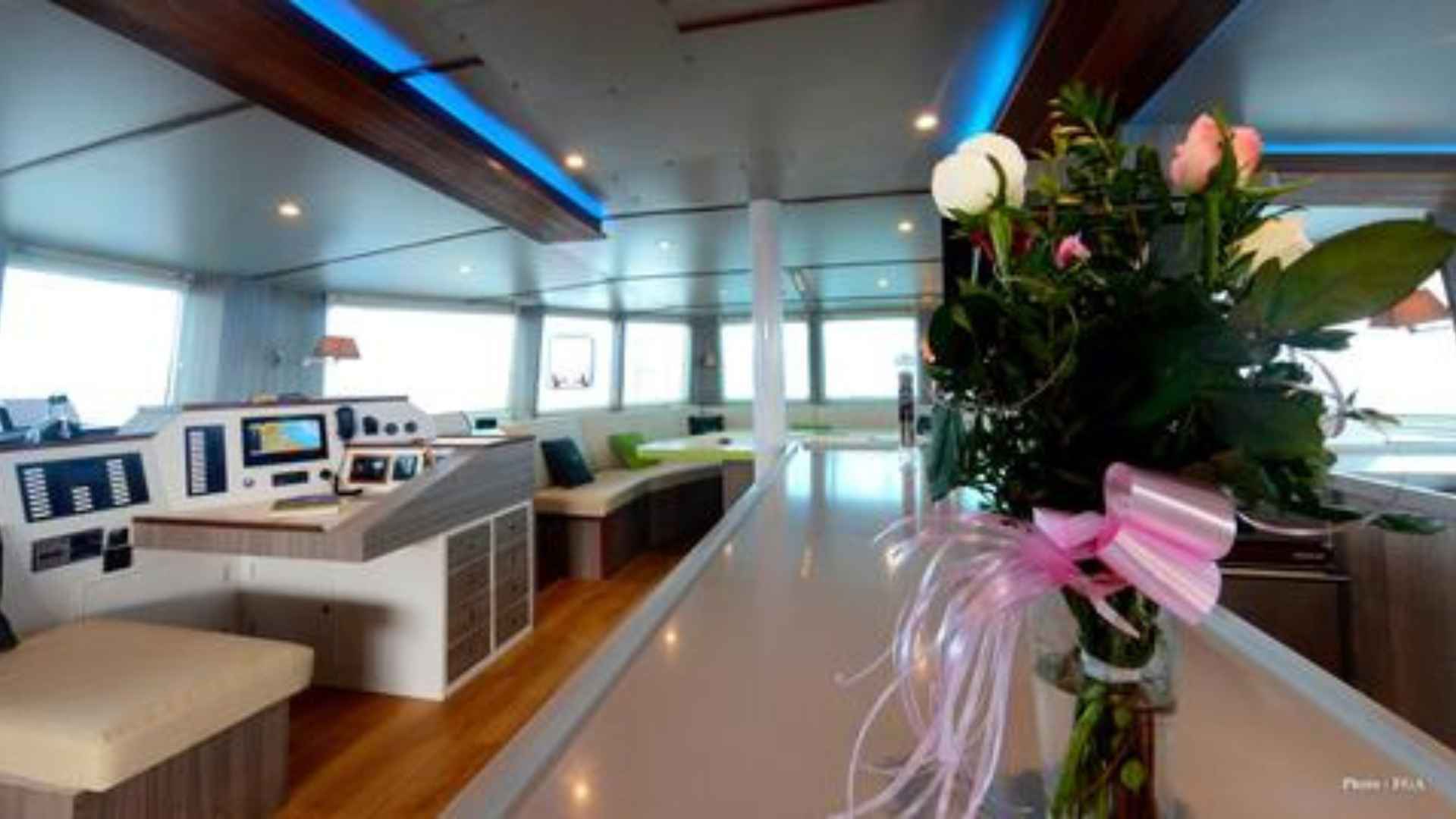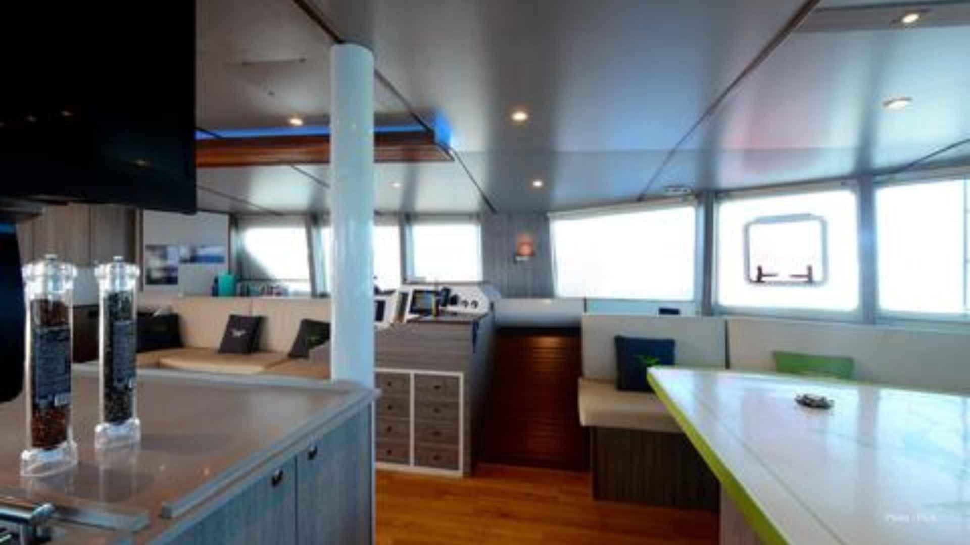 Catamaran CK 64 for sale 2019 The CK64 is a 64-foot long aluminum catamaran that blends elegance with robust engineering. This model features a spacious design that includes four comfortable double cabins for guests and two additional cabins for the crew, making it suitable for luxury cruises or charter services. Key Specifications: - Length of the hull: 19.60 meters - Overall beam (width): 9.20 meters - Draft: 1.40 meters - Displacement: 32 tons - Power options include twin 110 HP engines as standard, with the option to upgrade to 140 HP turbo engines. - The fuel capacity is substantial, holding up to 2 x 3,200 liters of diesel, ensuring long-range cruising capabilities. - Freshwater storage is also ample with two tanks, each carrying 1,200 liters, ideal for extended voyages. - For convenience and environmental considerations, the catamaran comes equipped with a high-density polyethylene (HDPE) system for black water with a dedicated nacelle, and a VETUS system for gray water management in the hull bottoms, each fitted with an individual lift pump. - Additionally, the CK64 holds two 80-liter and two 50-liter tanks for black and gray water, respectively. Designed with both performance and comfort in mind, the CK64 catamaran is a premium choice for those desiring a blend of luxury and practicality in marine travel. Hull and Deck Construction: - Hulls and superstructures constructed from aluminum alloy 5083 H111 - MIG-welded lined sheets with penetrant testing for integrity - Alternately welded stringers, ribs, and floors - Watertight bulkheads welded on both sides - Integrated diesel and water tanks - Non-ground welds on non-visible surfaces enhance weld resistance and nacelle safety Appendages and Bar Systems: - Profiled aluminum rudders - Aluminum rudder stocks - Marsili hydraulic tiller system - Aluminum quillons Insulation: - Thermal and sound insulation using projected polyurethane foam above the waterline - Engine and generator compartments feature reinforced insulation with rock wool, sound insulation foam, and perforated aluminum sheet Paint Coatings and Finishes: - International/awl grip mixed process - Underwater parts: degreasing, pickling, 3-4 coats of epoxy primer totaling 200 μ, 1 coat of 50 μ epoxy vinyl, 2 coats of antifouling - Topsides: degreasing, pickling, 50 μ epoxy primer, epoxy filler, polyurethane undercoat, and 3 polyester urethane finish coats - Anti-slip epoxy paint on decks and traffic areas - Teak steps on the rear cockpit, flybridge, and skirts, 8mm thick Mast and Boom: - 24m painted aluminum mast, Maréchal Z 1602 - 8.50m painted aluminum boom - Navigation and anchor LED lights, wind vane, topmast light, and deck light - Retractable mast rungs - Ladder for coachroof access via forward cockpit on starboard - Aluminum bowsprit Standing and Furling Rigging: - Sparcraft monostrand stainless steel rigging - Profurl NC530 electric genoa furler - Fixed staysail with carabiner Sails: - Elvstrom cruise dacron double ply supplier - Fully battened mainsail of 120m² with 3 reefs and anti-chafe strips - 130m² genoa with UV-protection band - Total sail area of 250m² upwind and 320m² downwind Safety and Protection: - Stainless steel aft and bow pulpits and Ø26 stanchions - Handrail behind aft cockpit seats - Lifeline anchors in cockpits and on deck - Welded aluminum toe rail - 4mm double-level stainless steel die - 85cm high chandeliers and balconies - Wooden seats on front pulpit - A door on each side Cockpit and Aft Skirts: - A vast aft cockpit shielded by the upper deck and equipped with lighting - Seating with large storage compartments - Teak flooring and steps - Three benches featuring storage boxes - Six combination stool/storage units - Drink refrigerator and freezer - Cockpit dining table - Comfortable stainless steel swim ladder on the port skirt for man overboard situations - Customizable aft cockpit upholstery for seats and backrests - Customizable aft cockpit sundeck upholstery - Complete aft cockpit enclosure - Underwater lighting with high-intensity projectors at the stern Helm Station: - Elevated helm station with a two-seater pilot seat - Helming console equipped with a magnetic compass - Console with cable-operated engine controls - Raymarine Axiom 15 navigation unit, visible from the helm - Composite steering wheel - Electronic engine controls - Remote control for engine and navigation systems for docking and anchoring Main Features: - Interior finishes made of veneered marine plywood sandwich and honeycomb (using NIDAPLAST with formica and glued edges on visible parts) for weight reduction - Bathrooms finished in white laminate - Kitchen countertops made of synthetic stone, akin to Corian - Headroom of 2.15-2.25m in living quarters - Safety handrails in descent areas - Marine grade hardware - Indirect and step lighting for ambiance and safety Galley: - U-shaped galley on starboard side with access to the aft cockpit via sliding window - Double deep stainless steel sink with hot/cold water tap - Synthetic stone counters - Storage in cupboards and a storage column - Professional 3-burner gas cooker (Burgundy Embassy) - External venting extractor hood - Large HAIER HB21F refrigerator/freezer, or similar model - Dishwasher Cabins: - Four "Grand Comfort" cabins - 150 x 200 cm double beds with dual-side access in aft cabins - High-density mattresses on slatted bases - Ample storage including large wardrobes, shelves, and drawers - Office space, LED and ambient lighting, with two reading lights in each cabin - 2.15 m headroom, large windows, deck hatch, and large mirror in each cabin Bathrooms: - One bathroom per cabin - PLANUS electric toilet - Basin set in counter with storage and hot/cold mixer tap - Towel rack, mirror with LED lighting - Port window in the hull, large deck hatch, and large windows - Separate shower with plexiglass walls Machinery: - Twin 110 HP engines, optional SD4.140 TIC SCAM 3.8l - Sea water filter, electric motor control - Dou