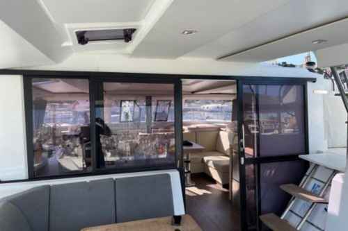 Fountaine Pajot Astrea 42 for Sale 2019 | 4 Guest Cabins + 2 Crew Cabins | Tax PaidIf you are seeking a well-maintained catamaran for comfortable cruising or charter, consider this Fountaine Pajot Astrea 42 for sale 2019. The vessel is in good condition and is currently visible in Sicily. Built in 2019, she features spacious interiors, up-to-date electronics, and a generous accommodation layout suitable for families or groups. She is registered under the Italian flag, has been used by one owner, and comes with a valid safety certificate until December 2027.Main SpecificationsBrand: Fountaine Pajot Astrea 42Year: 2019Located: SicilyRegistration: Italian, Pleasure YachtOwner: OneSafety Certificate Expiry: 03/12/2027Maximum Persons: 22 / 18 / 12 (depending on registration)DimensionsOverall Length: 12.58 mBeam: 7.20 mDraft: 1.25 mDisplacement: 12,700 kgHull & DeckHull Colour: WhiteHull Material: VTR (fibreglass)Keel Material: VTRCockpit Table: Yes (solid wood)Cushions: Sunbrella outdoor fabricDeck Shower: YesInterior LayoutDouble Cabins: 4Crew Cabins: 2 forwardConvertible Dinette: Sofa converts to bedTotal Bathrooms: 4Showers: 4Electric Toilets: 4Interior Wood: OakGalley:Stove—3 burnersRefrigerators—3Engine and PropulsionEngines: 2 Volvo PentaPower: 50hp eachYear: 2019Operating Hours: 1200 (as of November 2025)Type: InboardSteering: WheelFuel Tank: 470 litresSails & RiggingLazy Bag: YesFurling Mainsail: YesMooring & SafetyTender: Yes (2025)Outboard: Yes, 10hp (2025)Anchor Windlass: YesAnchor & Chain: YesMooring Lines: YesLife Raft: Yes (expires 03/2025)Fenders: 6+2Electronic SystemsAutopilot: YesVHF: YesEchosounder: YesLog: YesCompass: YesWind Instruments: YesStereo: YesPlotter: YesElectrical & ComfortVoltage: 12VBatteries: 4Battery Capacity: 800 + 200 ampWater Tanks: 2 (total 700 litres, plastic)Battery Charger: YesHeating: YesAir Conditioning: YesBoiler: YesAutoclave: YesBlack Water System: YesSummaryThe Fountaine Pajot Astrea 42 for sale 2019 is in good condition, well-equipped, and ready for further adventures. The catamaran is ideal for both private owners and charter operators. If you would like more information or to schedule a viewing in Sicily, please contact us.
