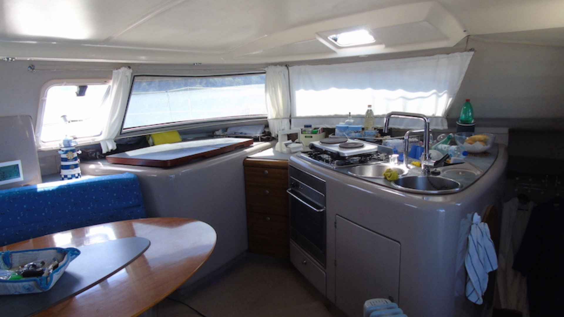 Fountaine Pajot Venezia 42 for sale 1994 | 4 Guest Cabins + 2 Crew Cabins | Tax PaidThe Fountaine Pajot Venezia 42 for sale 1994 represents a proven model in the world of cruising catamarans, known for comfort, stability, and long-range cruising potential. This particular vessel, flagged in Poland, is in good condition, benefitting from regular upgrades and attentive maintenance (Bimini, Raymarine Instruments, Code 0, Gennaker...). The Fountaine Pajot Venezia 42 for sale 1994 remains a popular choice for families, blue water sailors, and anyone looking for generous living space and reliable performance.Cockpit & Deck Equipment Sprayhood: YesBimini: Yes (new, 2025)Cockpit table: Yes (fibreglass)Winter cover: YesComplete cockpit enclosures: Yes (new in 2023)Seacocks: Randex MarineWater alarms: Abus detectors with alarms in each hullAccommodation & InteriorDouble cabins: 4Crew cabins: 2Dinette berths: 1Bathrooms: 2 (shower boxes within bathrooms, not separate)Interior wood: Stained walnutStove: Gas + electricOven: GasRefrigeration: 12V system + Frigoboat fridgeEngines & PropulsionNumber of engines: 2Engine brand: YanmarModel: 3GM30FPower: 27 hp eachYear: 1994Engine hours: 8000 (port), 5000 (starboard) as of April 2025Last overhaul: 2022Fuel tank capacity: 350 LTransmission: SD 20Propellers: Kiwi Prop (2023) + two fixed 2-blade propsSteering: Wheel with midship brakesAlternator: STerling ProReg B regulator on port alternatorNavigation & ElectronicsAutopilot: EV200 with P70s displayVHF: Fixed Icom M323 DSC + portable ICOM IC-M7 MRCTridata instrument: YesChartplotter: Axiom 7” at helmWind instrument: YesNavigation package: Raymarine (2024) including multi i70s, autopilot, wind, transducers, Axiom 7”All navigation info repeated on a 2024 Lenovo TV screen in dinette; autopilot and Axiom can be controlled from hereUpdated Mediterranean electronic chartsUtilities & ServicesVoltage: 12VWater tanks: 2 (connected), steel, total capacity 600 LBilge pumps: 6 total (2 per hull, 2 for engines)Heating: Webasto 5 kWBattery chargers: 2 Victron 25A each, WiFi enabledBoiler: 80 L (connected to starboard engine, fully insulated, heating element replaced in 2024)Pressurised water system: With expansion tankBlack water tank: Yes (connected to port head)External shower: YesRigging & SailsMast: 17 m aluminium with trapezes (catamaran rig)Bowsprit: 2 m aluminiumWinches: 7 total (6 Lewmar 44 stainless steel, 1 Lewmar 40 at mast)Lazy bag: YesFurling headsail: GoiotSails:Mainsail: Dacron reinforced, 58.8 m²Headsail: Dacron, 28 m²Code 0 laminated, 72 m² (2024) with sock and continuous line furlerGennaker, 122 m² (2020)Tender & AnchoringTender: Avon Rib 340Outboard: Evinrude 4 dv 2-strokeWindlass: Goiot 312Anchors: Main CQR (2024), secondary CQR, Danforth backupChain: 80 m (new 2024)Mooring lines: YesLife raft: Oceanic, 12 person, unlimited navigation (hard case, requires inspection)Fenders: 8 + 2 ball fendersThe Fountaine Pajot Venezia 42 for sale 1994 is appealing for anyone looking for a solid cruiser in good condition, ready for extended passages or comfortable life aboard. For further details or to arrange a viewing, please contact us!