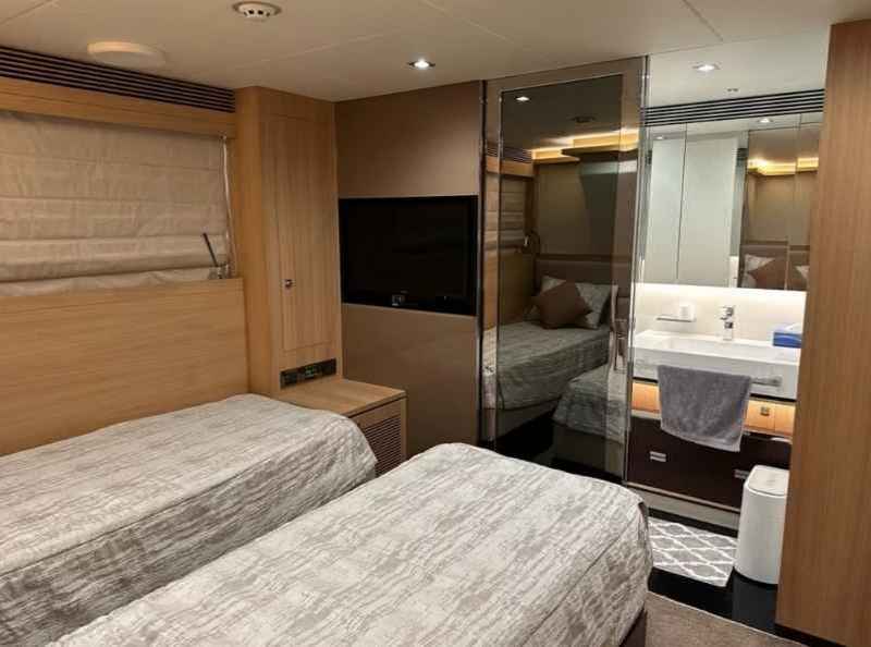Horizon FD 80 For Sale 202 | Guest Cabins: 4 | Crew Cabins:4 PRICE : 4,900,000 US$Horizon FD 80 For Sale 2021 presents an appealing opportunity for anyone seeking a modern 24.5‑metre motor yacht with generous volume and a thoughtful layout. Part of Horizon’s well‑regarded Fast Displacement series, this FD80 model is designed to offer a balance of comfort, practicality and contemporary style. Delivered in 2021 and maintained in good condition, she provides a capable platform for both private cruising and enjoyable time onboard with family or friends.Specifications: • Brand: Horizon • Year: 2021 • Length: 24.5 m • Max. Beam: 6.8 m • Construction: FRP • Draught: 1.7 m • Gross Tonnage: 140 GT • Location: Hong Kong • Max Speed: 20 knots • Fuel Tank: 10,220 l • Water Tank: 1,500 l • Engines: 2 x MAN 1182 HP • Guest Cabins: 4 • Crew Cabins: 4The Horizon FD 80 For Sale 2021 is built with a focus on creating bright, open spaces that make full use of her beam. Her exterior profile highlights clean lines and a contemporary feel, while still keeping functionality at the forefront. One of the standout design elements is the extensive use of floor‑to‑ceiling glass in the main salon and dining area. This feature brings natural light into the interior and helps create an open, comfortable environment with uninterrupted views.On deck, the FD80 benefits from a practical layout that supports both relaxation and social time. Her outdoor spaces are notably generous for a yacht in this size range, rivaling those typically seen on larger 90‑foot‑plus vessels. The bridge deck aft provides ample room for seating and can accommodate a 16‑foot tender, offering flexibility for water activities or shore trips. Side wing stations assist in improving visibility during docking, a helpful feature for owner‑operators.Inside, the on‑deck master stateroom takes advantage of the yacht’s beam, creating a comfortable and private retreat with natural light from the surrounding glass sections. Below deck, three further guest cabins continue the theme of openness and functionality. Two VIP cabins and an additional guest stateroom provide comfortable accommodation for guests, and the presence of a window in the garage allows light to reach the beach club, enhancing the sense of space on the lower level.The salon is arranged to encourage conversation and relaxation, with easy access to the dining area and galley. The overall interior style is modern without being overly bold, offering a welcoming atmosphere suitable for long stays onboard. Materials and finishes have been selected with durability in mind, supporting the yacht’s suitability for regular cruising.Powered by twin MAN 1182 HP engines, the Horizon FD 80 For Sale 2021 reaches a top speed of 20 knots and provides efficient performance across a range of conditions. Her hull design supports stability and smooth cruising, whether operating at displacement speeds or higher.For those looking at the market for a well‑maintained motor yacht with good volume, balanced performance and a smart layout, Horizon FD 80 For Sale 2021 stands out as a practical and appealing choice.