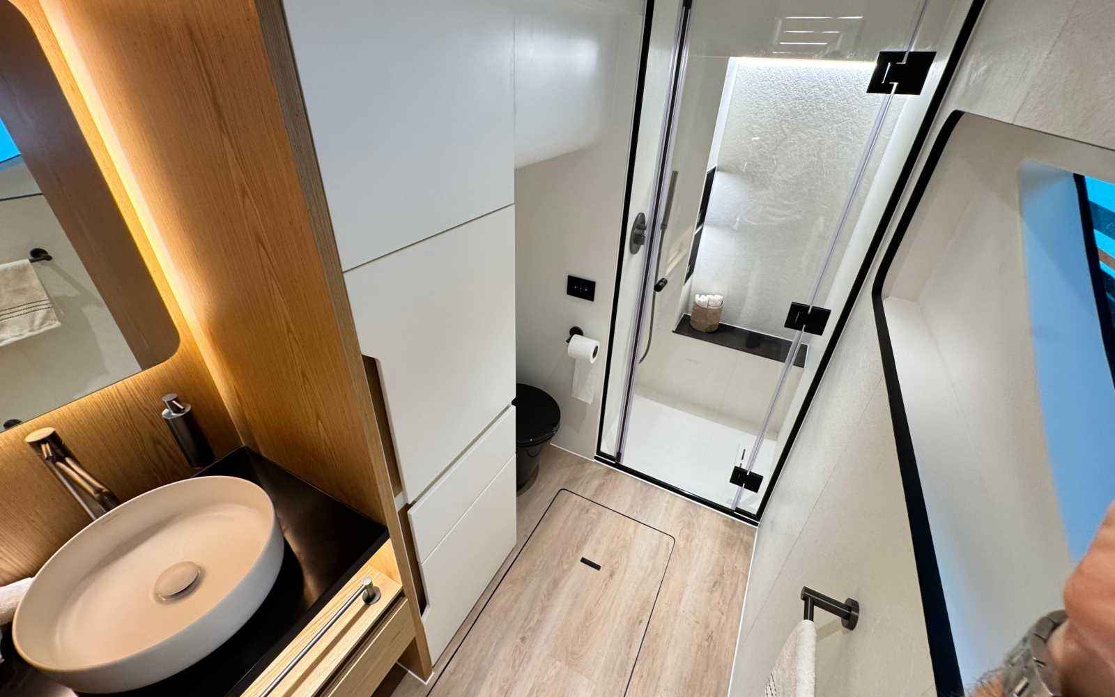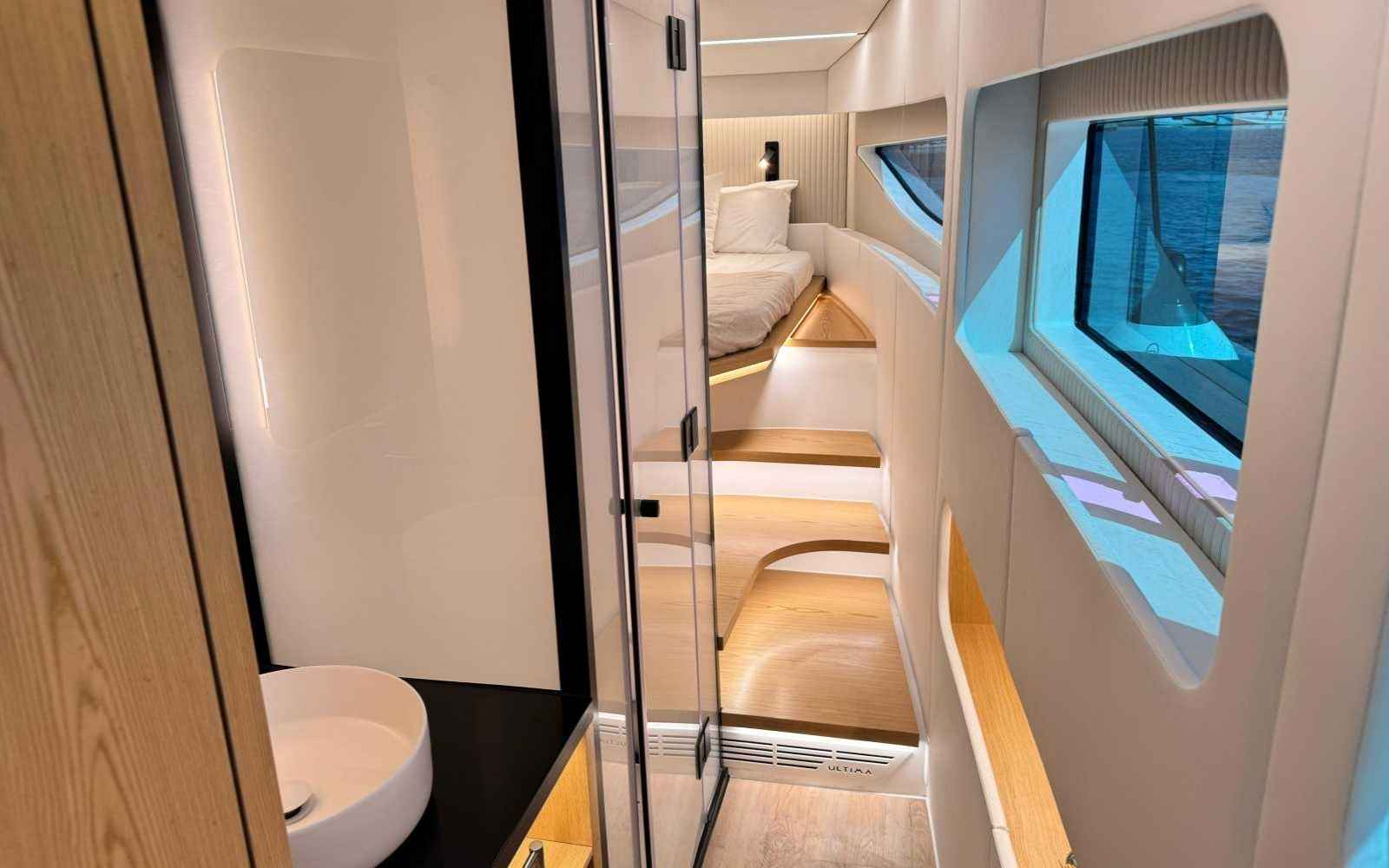 Sunreef 55 Ultima R2d2 For Sale 2025The Sunreef 55 Ultima R2d2 For Sale 2025 offers a balanced combination of comfort, performance and practicality, making her an appealing option for buyers looking for a modern power yacht in good condition. Delivered in 2025 and lightly used, she has logged only 50 engine hours, giving future owners the reassurance of nearly new machinery with the immediate availability of a completed and ready‑to‑sail vessel. Her overall design focuses on efficient cruising, easy handling and comfortable onboard living for both day trips and extended stays.Powered by 2 × Volvo D8 inboard diesel engines, each producing 800 hp, this Sunreef 55 Ultima provides a confident cruising speed of 25 knots with the ability to reach up to 39 knots when required. The hull design and beam contribute to stability and comfort while underway, making her suitable for various sea conditions. Fuel and water capacities are sized for practical coastal cruising, and her passenger layout accommodates relaxed social outings or private family use.The interior offers a thoughtful layout with two guest cabins, a crew cabin and multiple heads that provide privacy and convenience for everyone onboard. This configuration works well for weekend cruising or longer passages, supported by a range of onboard systems such as air conditioning, heating, a watermaker and household‑style appliances. The saloon and outdoor spaces are arranged to encourage easy movement and comfortable lounging, enhanced by useful extras like cockpit cushions, teak decks and a hydraulic gangway.Navigation and onboard systems are comprehensive, with a full suite of electronics including radar, GPS, autopilot and multiple entertainment features. Handling is simplified with joystick control and a bow thruster, making docking more manageable even for less experienced operators. For those who value functional outdoor space, the cockpit features a table, shower, Bimini top and covers that help protect her surfaces when not in use.Overall, the Sunreef 55 Ultima R2d2 For Sale 2025 presents an appealing package for anyone seeking a well‑kept, recently delivered yacht that is ready to use without requiring upgrades or repairs. She is in good condition, well‑equipped and prepared for her next owner to step aboard and begin cruising.Specifications:• Engines: 2 × Volvo D8 (2025), inboard diesel, 50 hours, 800 hp each • Dimensions: LOA 16.60 m, beam 5.50 m, max draft 0.90 m • Speed: cruising 25 knots, maximum 39 knots • Capacities: fuel 1 × 1,500 L; fresh water 1 × 300 L • Passenger capacity: seating for 6; maximum 12 passengers • Accommodation: 2 guest cabins; 1 crew cabin; 2 guest heads; 1 crew head • Covers: Bimini top; cockpit cover • Electrical equipment: generator; inverter; shore power inlet • Electronics: autopilot; cockpit speakers; compass; DVD player; depthsounder; GPS; log‑speedometer; navigation centre; plotter; radar; radar detector; radio; repeater(s); TV set; VHF • Inside equipment: air conditioning; battery charger; bow thruster; deep freezer; dishwasher; electric bilge pump; electric head; watermaker; heating; hot water; manual bilge pump; microwave; oven; refrigerator; seawater pump; washing machine • Outside equipment/extras: cockpit cushions; cockpit shower; cockpit table; hydraulic gangway; swimming ladder; teak cockpit; teak sidedecks • Additional equipment: joystick control